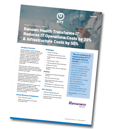 That’s why organizations turn to NTT Managed Services to manage their IT environments and support their strategic IT initiatives. By engaging our team of seasoned experts, clients know they have the resources and experience at the ready to keep their systems running smoothly and securely, while also having on-demand access to highly technical or specialized expertise to support one-off scenarios and initiatives.